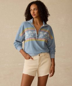 Faherty Women’s Dune Cotton Gauze Short Sleeve Popover – Light Indigo Wash | Light Indigo Wash