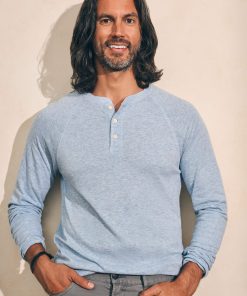 Faherty Men’s Long-sleeve Newport Cloud Henley (tall) – Light Blue Heather | Light Blue Heather