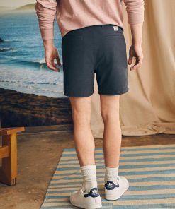- Fit: 5″ inseam. Relaxed fit. Straight leg. Sits below the natural waist