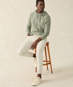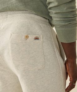 - Material: 56% Organic Pima Cotton, 44% Organic Cotton; Elastic Waistband; 4-Hole Faux Corozo Button at Wearer’s Right Back Pocket; Cotton Melange Round Drawcord at Waistband with Faherty Logo Metal Waves Tips
