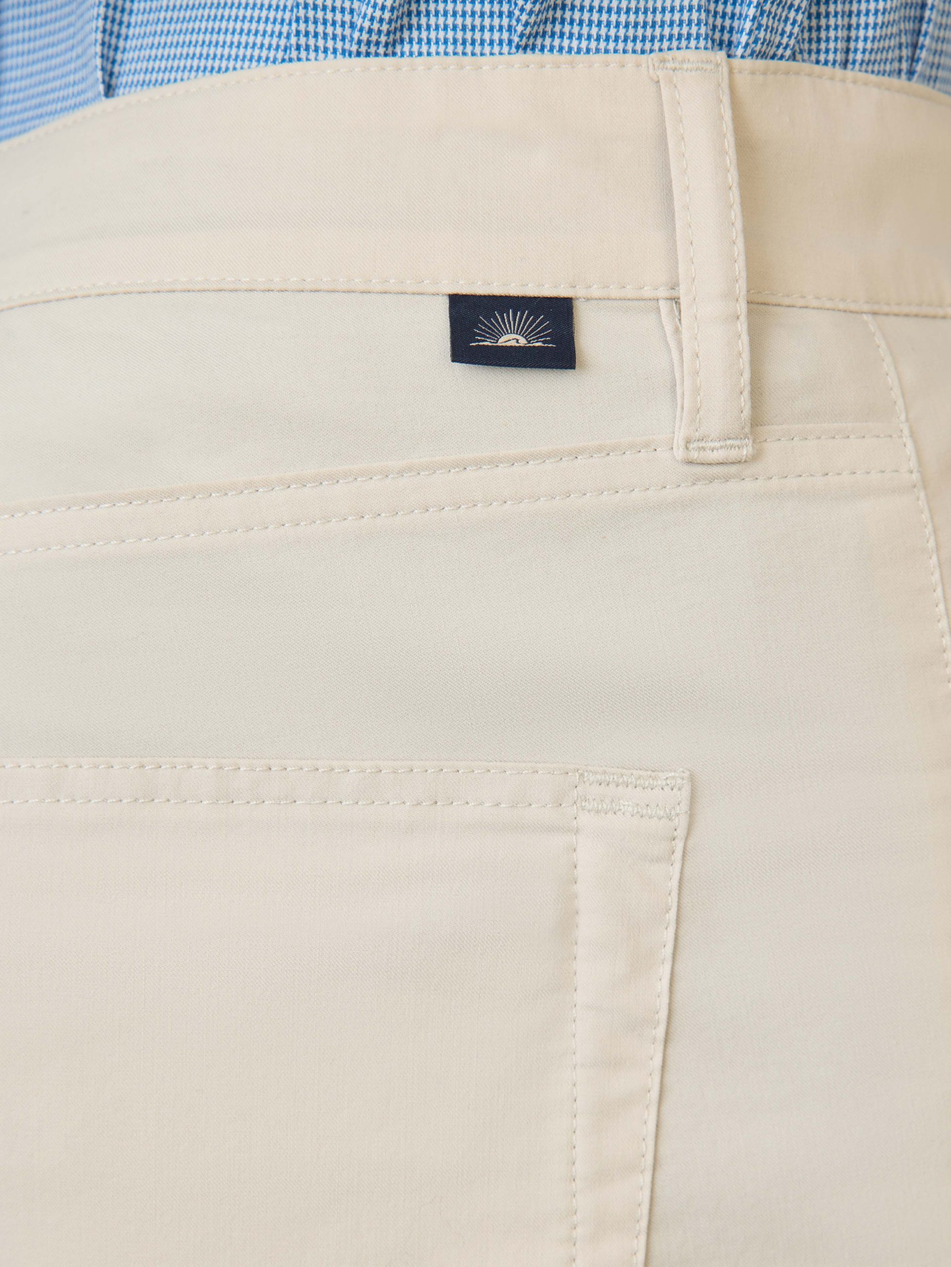 - Detail: Five-pocket style. Zip fly with button closure. Hidden zip pocket at the wearer’s right back. Elastic interior waistband for added comfort and a better fit