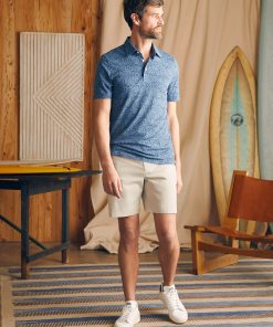 Faherty Men’s Movement™ Short-sleeve Pique Polo Shirt – Horizon Blue Frond Print | Horizon Blue Frond Print