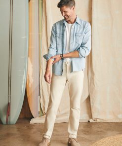 You’ve been asking for denim done our way and we’re stoked to bring it to you with the same high-quality, authentic style and legendary comfort we’re known for. We spent years developing the perfect denim fabric—organic cotton woven with a textured slub yarn that washes down and ages beautifully. Combined with just the right amount of stretch, they’re the most comfortable and lived-in jeans you’ve ever felt, from the first wear. Ours are responsibly designed too, with an innovative, energy-efficient wash process that utilizes 80% less water than conventional denim wash methods. This just-right fit is comfortable enough for all-day wear, yet tailored enough for a night out.