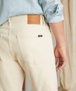 - Detail: 5-pocket slim straight denim. Comfort stretch. Garment-dyed stone wash.
