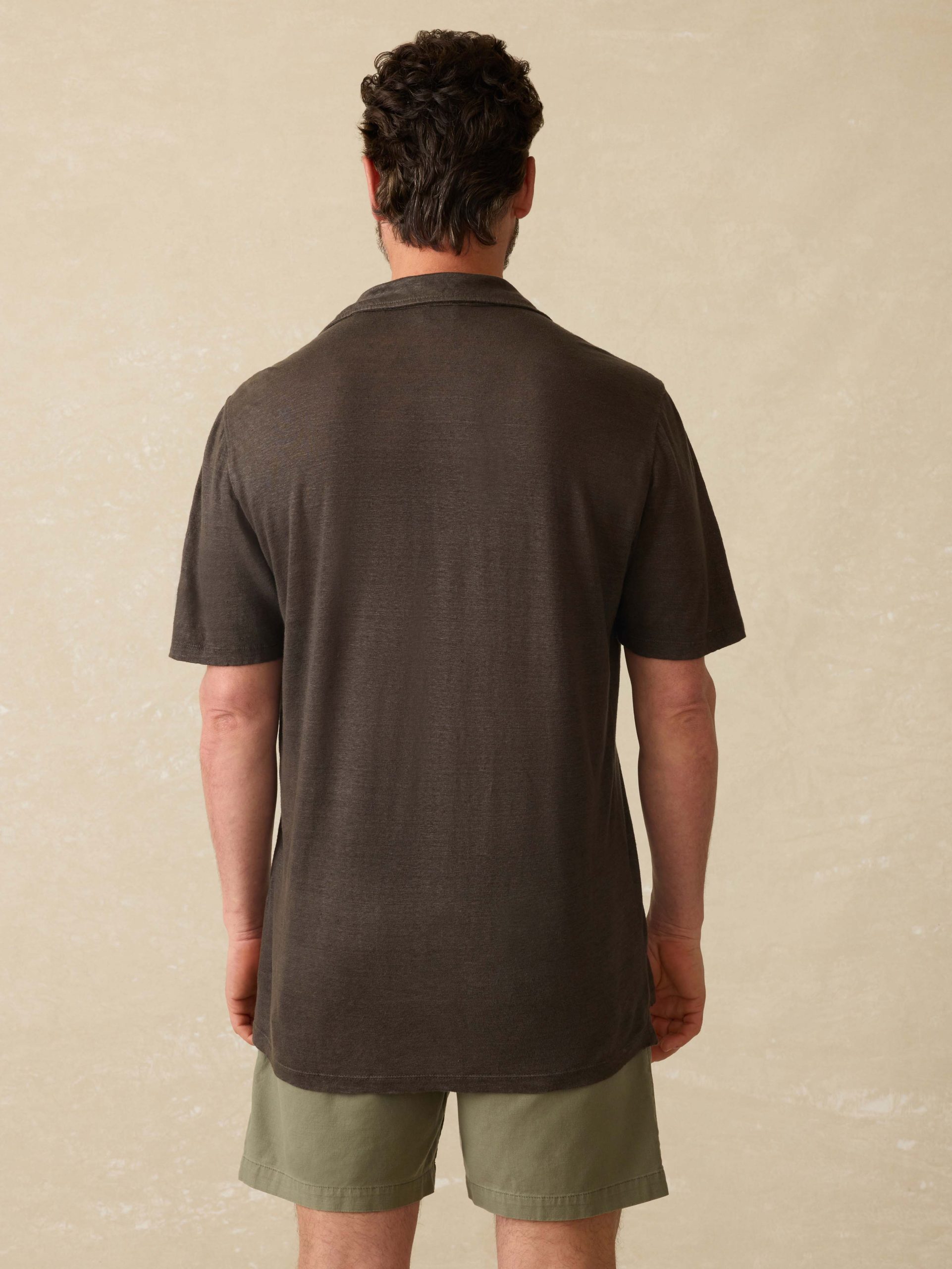 Faherty Men’s Short-sleeve Linen Polo – Washed Black | Washed Black