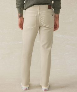 - Detail: Classic 5-pocket Pant. Metal shank and fly zipper opening. Faherty logo back patch at wearer’s right.