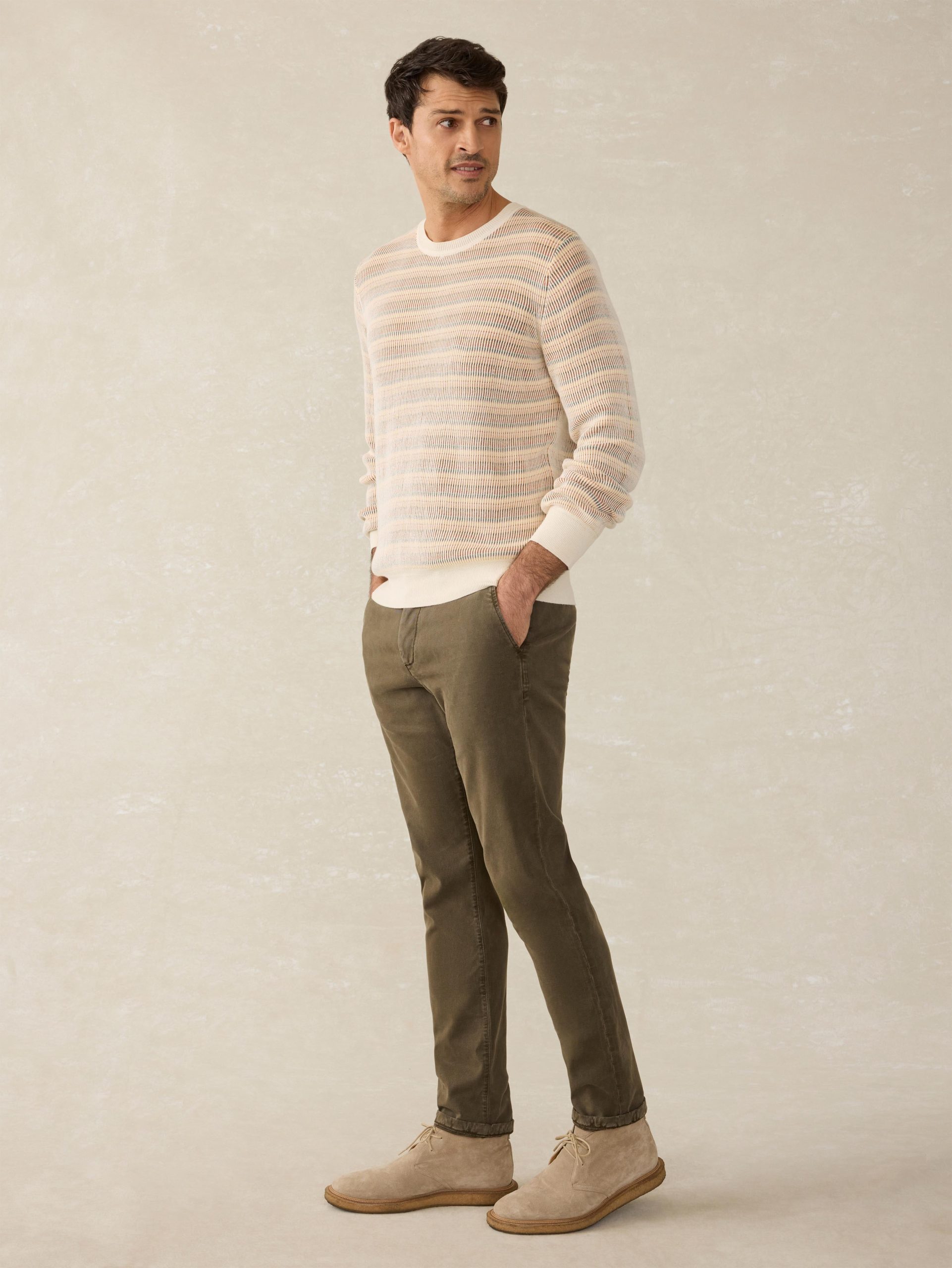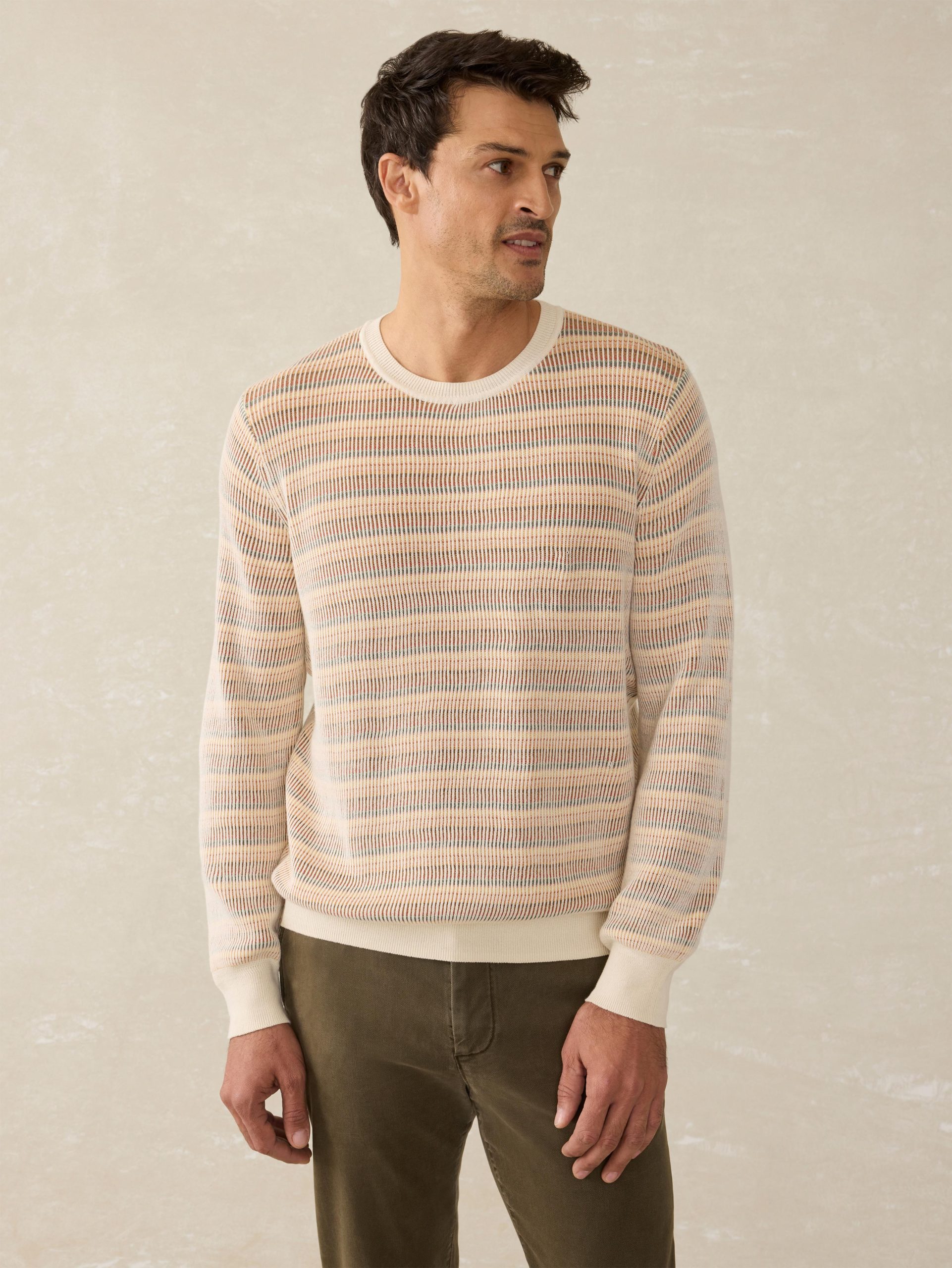 Designed as an easy to wear, transitional sweater, this will be your go-to year-round crew. Our cotton yarn is super soft but not overly warm and knit in an airy, waffle stitch giving the sweater dimension and texture. It’s then garment-dyed and washed for a lived in, vintage look and feel that’s casually cool for any occasion.