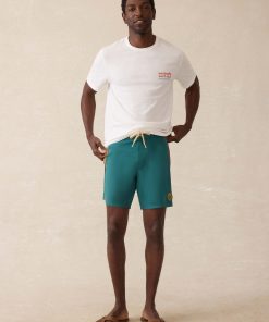 - Detail: Top applied stripes at outseams. Reverse entry zipper pocket at wearer’s right backside. Classic boardshort drawcord tie closure. Gusset fly with both velcro closure. Compression knit liner with media pocket on wearer’s left side. “Sankofa Surf Club” woven patch at wearer’s left hem. Faherty Brand woven label at center back of waistband.