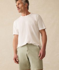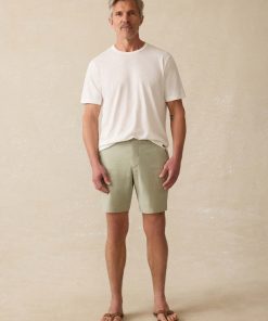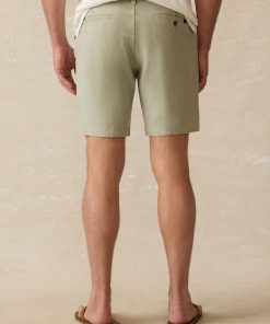 - Detail: Chino short with slanted front pocket and welt back pockets, 8″ inseam.
