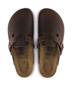 - Detail: Our most sought-after clog, the Boston lends a fashion-forward edge to any style. Handcrafted for quality, oiled nubuck leather looks distinctly heritage, designed to age over time for a perfectly worn, one-of-a-kind look. Featuring an additional foam layer for cushioning, the soft footbed offers extra comfort plus go-all-day support. Cushioned BIRKENSTOCK soft footbed creates custom support with wear Oiled leather upper Suede footbed lining helps keep you comfortable EVA sole is flexible and lightweight Adjustable strap with metal pin buckle “Made in Germany” quality stamp on footbed