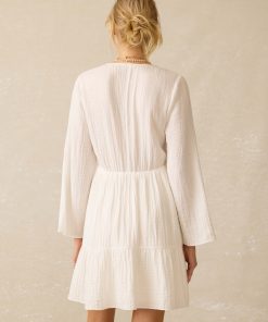 This flowy mini dress is crafted from soft gauze cotton that feels like a warm breeze. Shirring at the bodice adds texture, while a tiered skirt and billowy sleeves bring all the effortless movement. Lightweight, breathable, and sun-kissed ready—it’s the kind of piece you’ll reach for all season long.