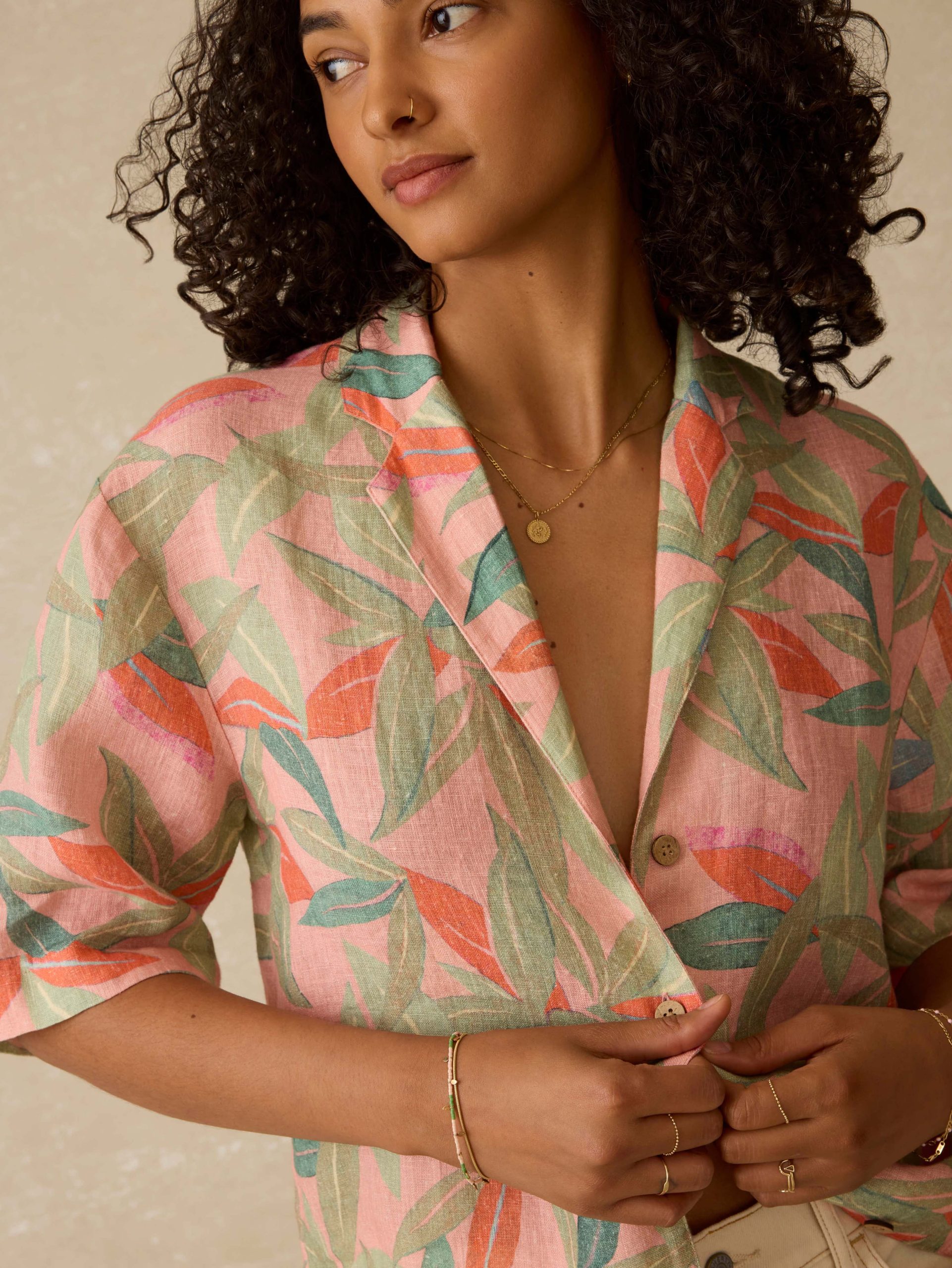 Vacation state of mind, bottled up in a shirt. This linen camp shirt brings the island vibes with a vibrant, lush tropical print and an easy, relaxed fit. Lightweight, breathable, and effortlessly cool, it’s your go-to for beach days, backyard drinks, or anytime you want to feel a little closer to the equator.