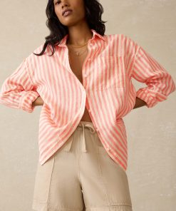 Faherty Women’s Laguna Linen Relaxed Shirt – Peach Lucy Stripe | Peach Lucy Stripe