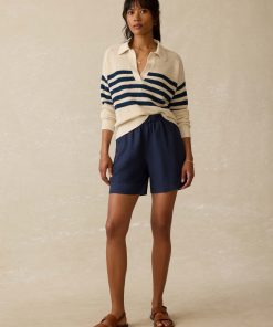Faherty Women’s Miramar Linen Polo Sweater – Ocean Ties Stripe | Ocean Ties Stripe