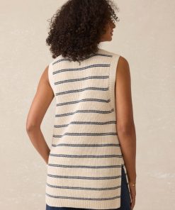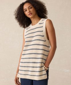 - Detail: Sleeveless tunic with rib trim details and side slits.