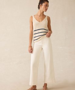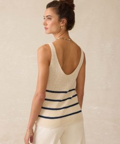 Faherty Women’s Miramar Linen V-neck Tank – Sand Cove Stripe | Sand Cove Stripe