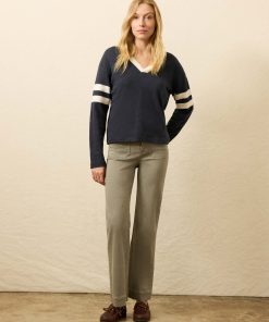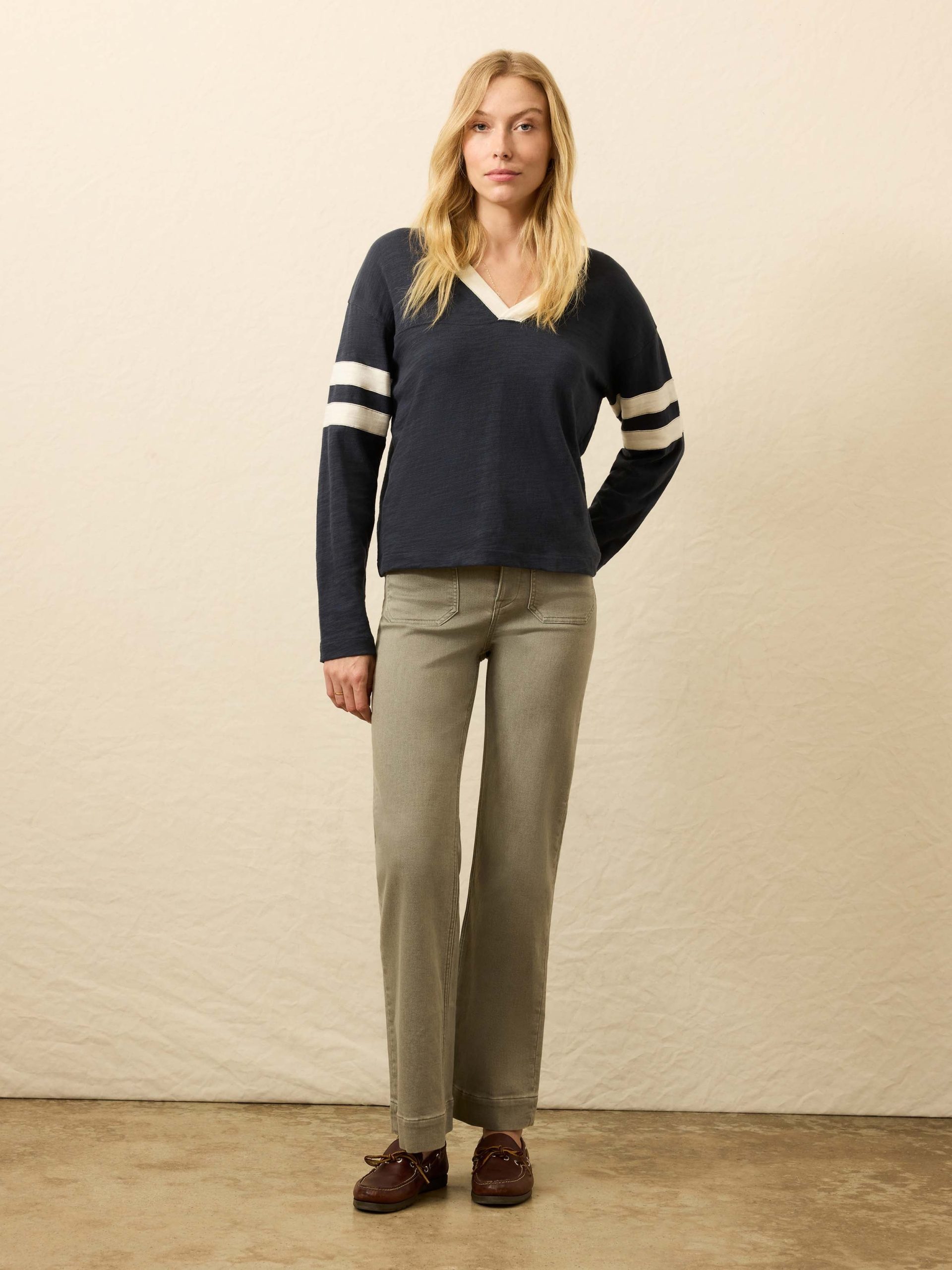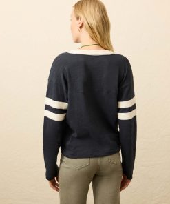 Faherty Women’s Organic Cotton Sunwashed Slub Varsity V-neck – Blue Nights | Blue Nights