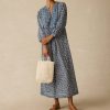 - Detail: Print mix v neck dress with cotton drawcord and tassel. Shell buttons at sleeve cuff.
