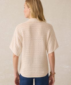 - Detail: Short sleeves, rib trim at collar. Novelty crochet stitch.
