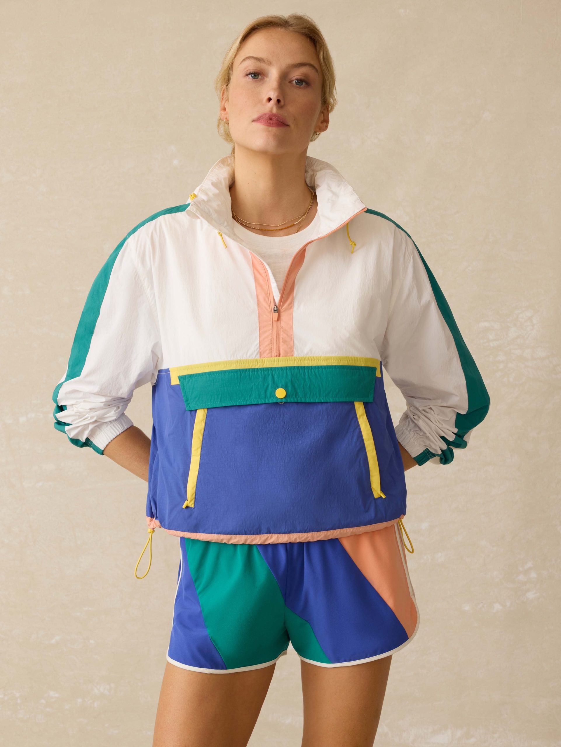 Built for breezy days and spontaneous adventures, this half-zip windbreaker brings function and fun in equal measure. Thoughtful details—like a packable front pocket, adjustable drawcord hem, and roomy welt pockets—make it ready for whatever the day throws your way. The hood’s there when you need it, and the playful colorblocking adds just the right pop of personality.