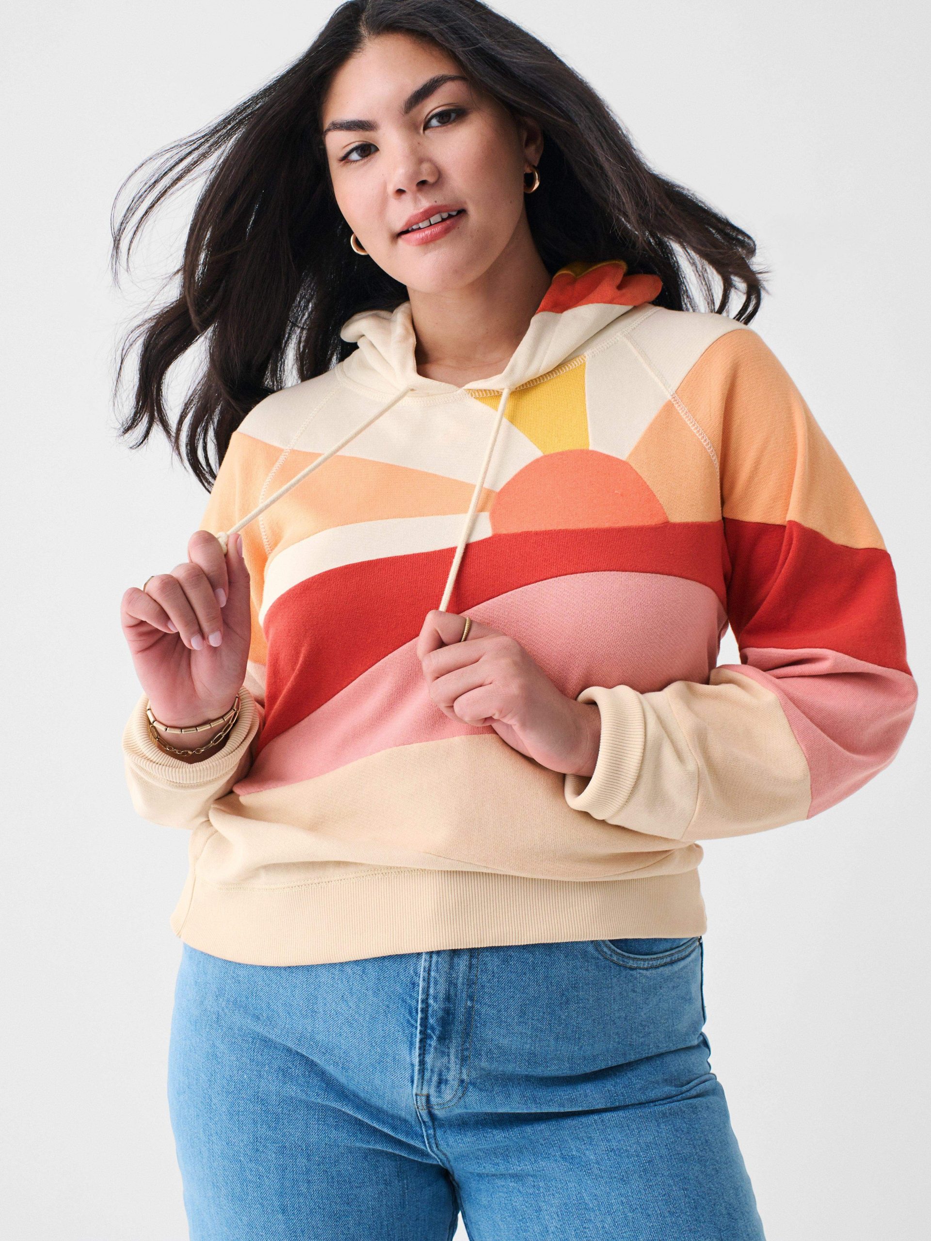 Sunny days are ahead in our ultimate Faherty hoodie. Made from a super-soft and lightweight French terry, this where everywhere layer is pieced together in a sun, sea, and sand motif that channels all the feel-good vibes.