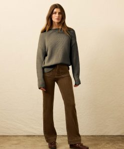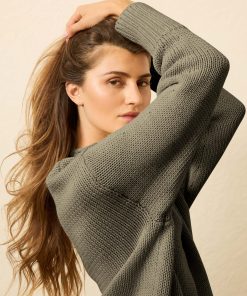 - Detail: Long sleeve crewneck sweater. Jersey roll detailing at neckline. Rib trim detail at sleeve cuffs and bottom hem.