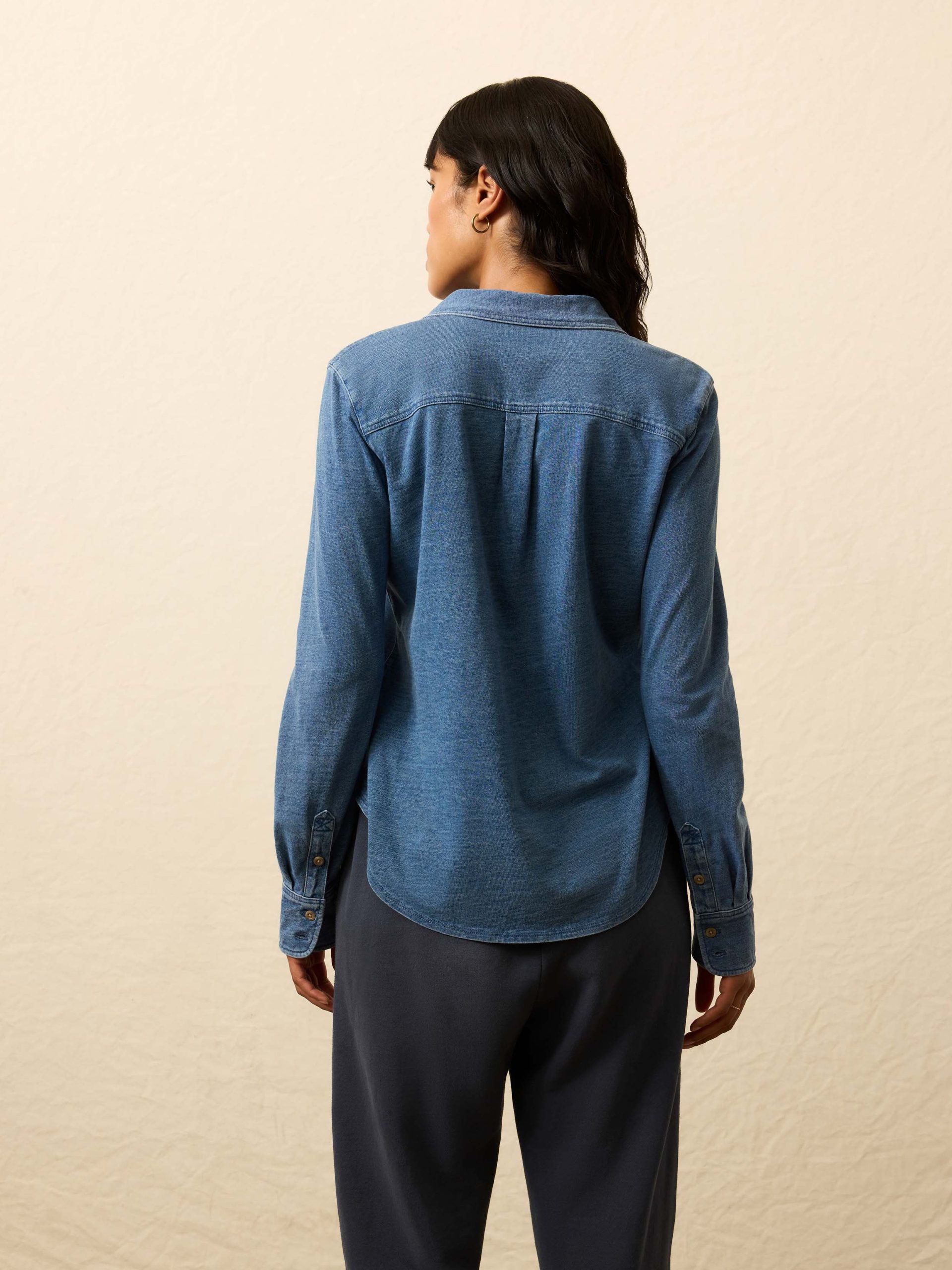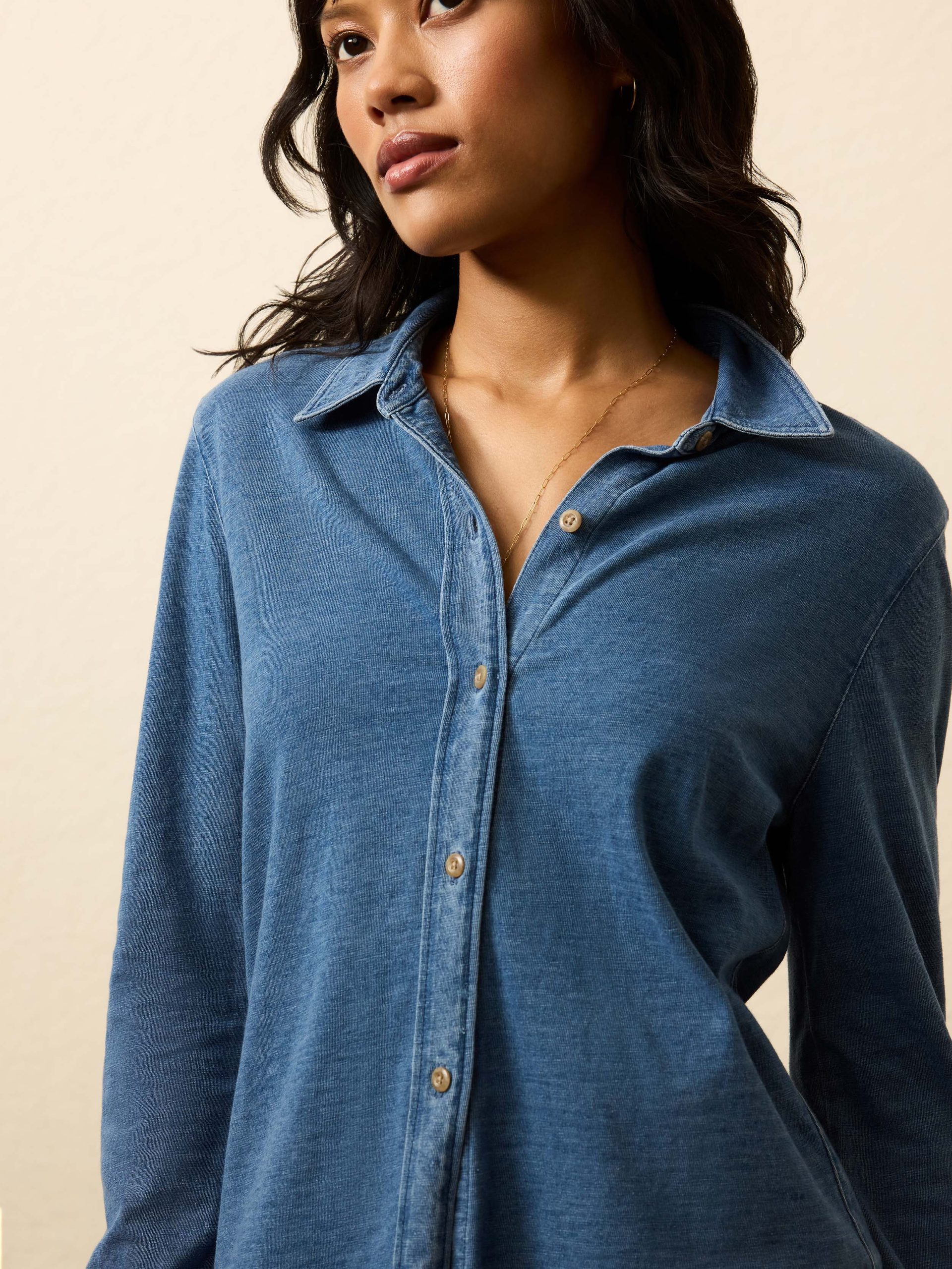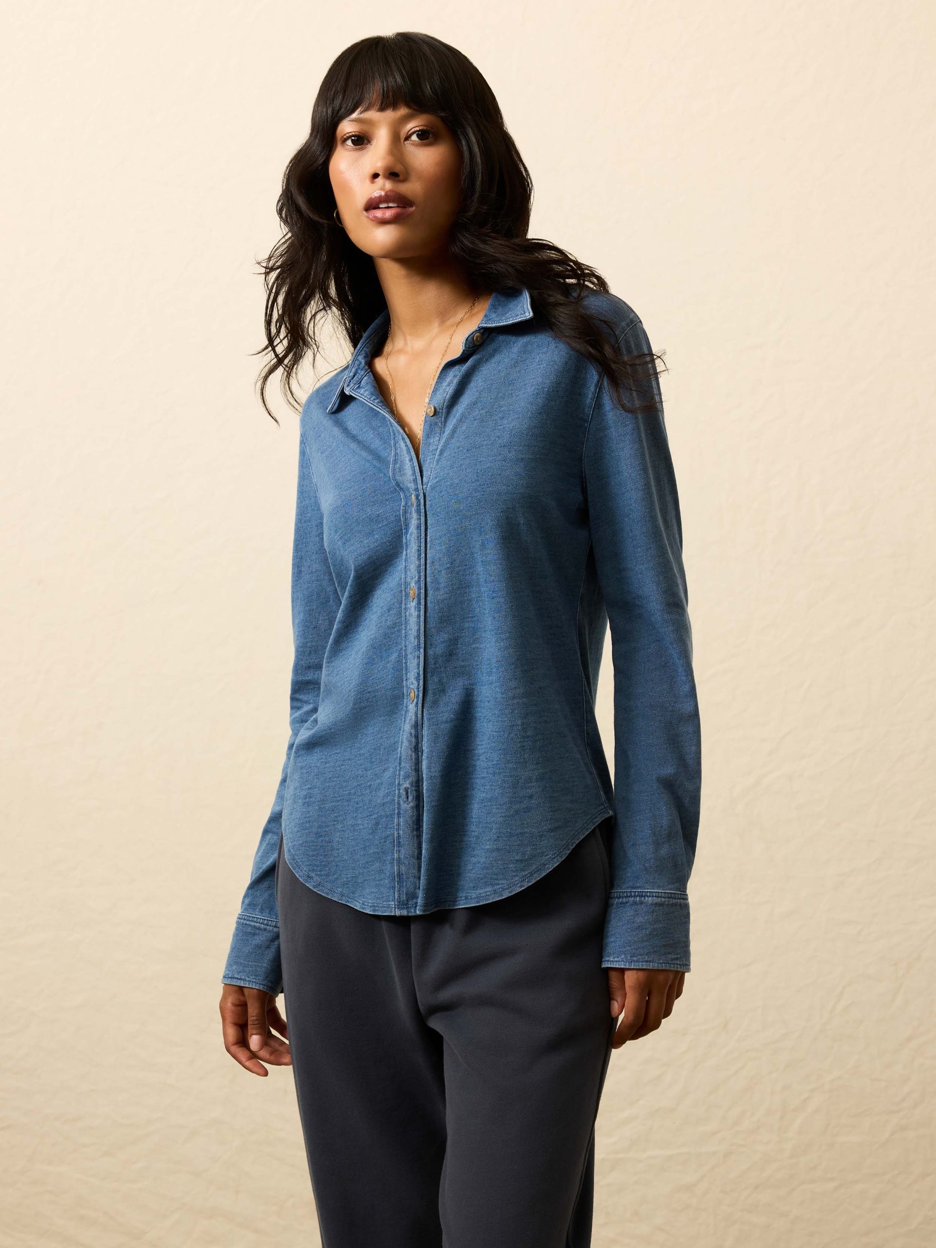Borrowed from the boys, this icon is truly one of a kind — it looks like a button-up, but wears like a soft tee. Unique to Faherty, it has been designed and tailored for refinement, while still feeling like a mid-weight organic slub cotton T-shirt; it’s season-spanning and pairs with everything.